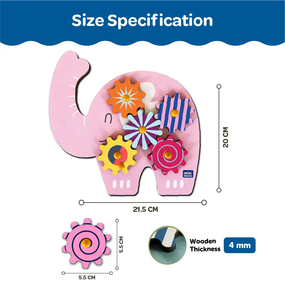 Baby Elephant Wooden Gear Toys with 5 Interchangeable Gears for 2+ Years