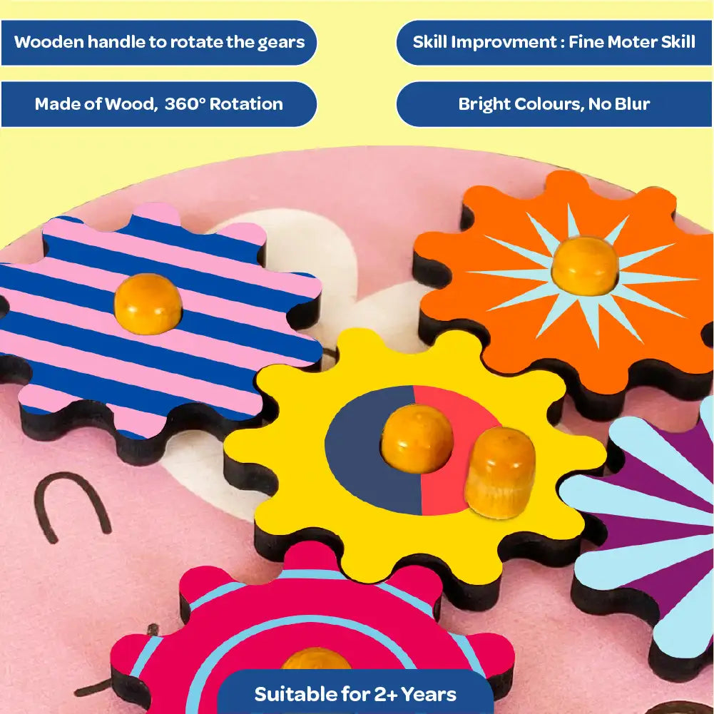 - Safe and Sturdy Toy: Sturdy, colorful wooden gears make it easy to hold, place and spin gears.