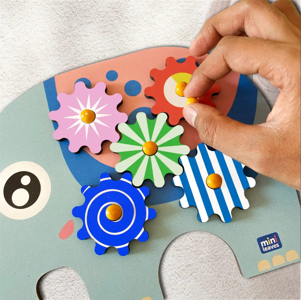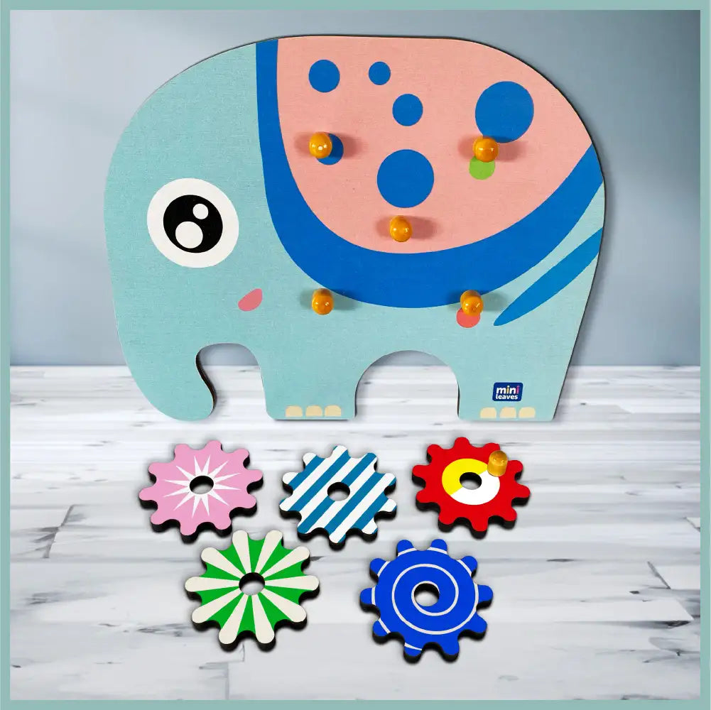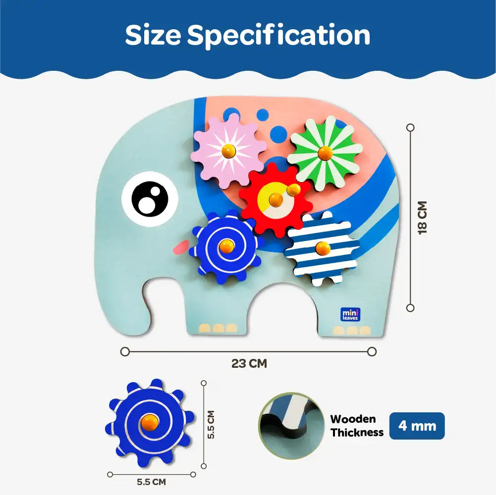 Elephant Wooden Gear Toys with 5 Interchangeable Gears for 2+ Years