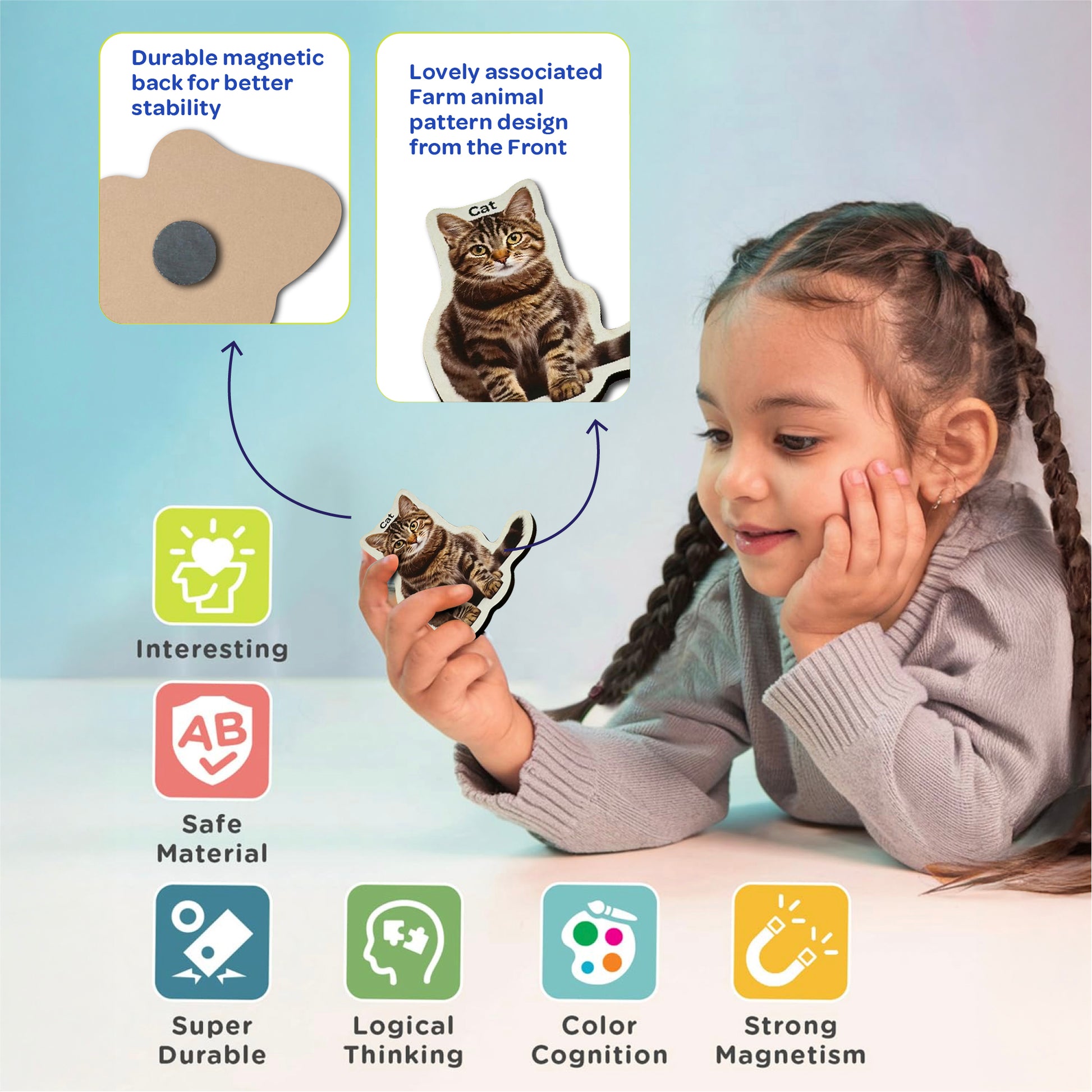 - 12 Farm-Themed Magnets: Includes cow, horse, goat, camel, dog, cat, duck, pig, and more to introduce kids to common farm animals.