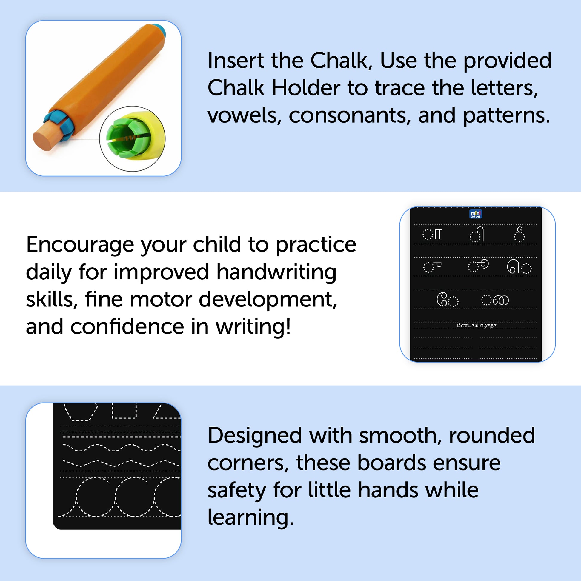Introduce your child to the beauty of the Tamil language with the Mini Leaves™ Tamil Letter Tracing Slate—a thoughtfully designed educational aid for early learners. This reusable chalkboard set is perfect for practicing Tamil alphabets, basic strokes, and shapes in a fun and hands-on way.