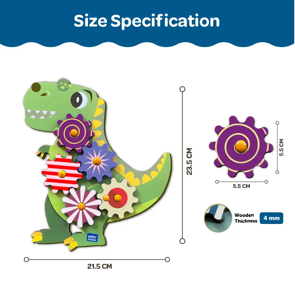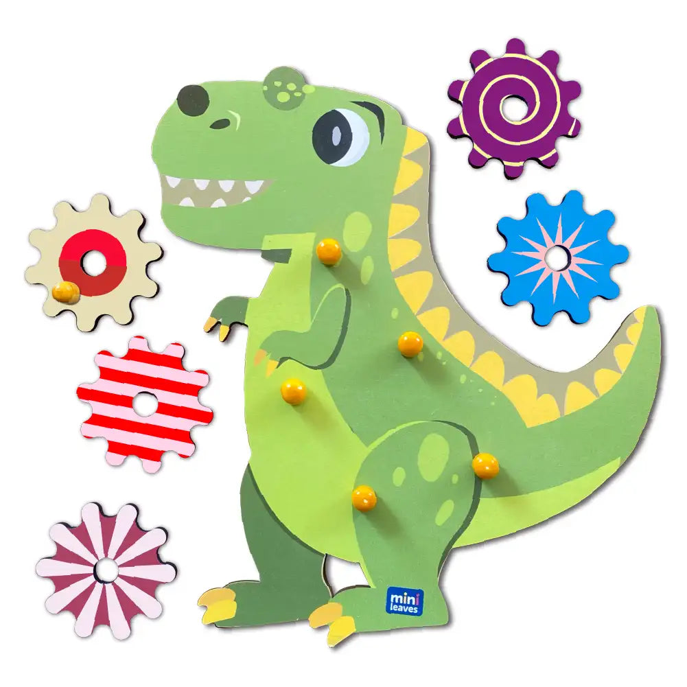Discover the wonders of mechanics with our Mini Leaves The Roaring Dino Wooden Gear Toys! Designed for children ages 2 and up, this interactive toy includes 5 interchangeable gears that promote fine motor skills and education through play. Build and spin to engage in creative and educational fun.