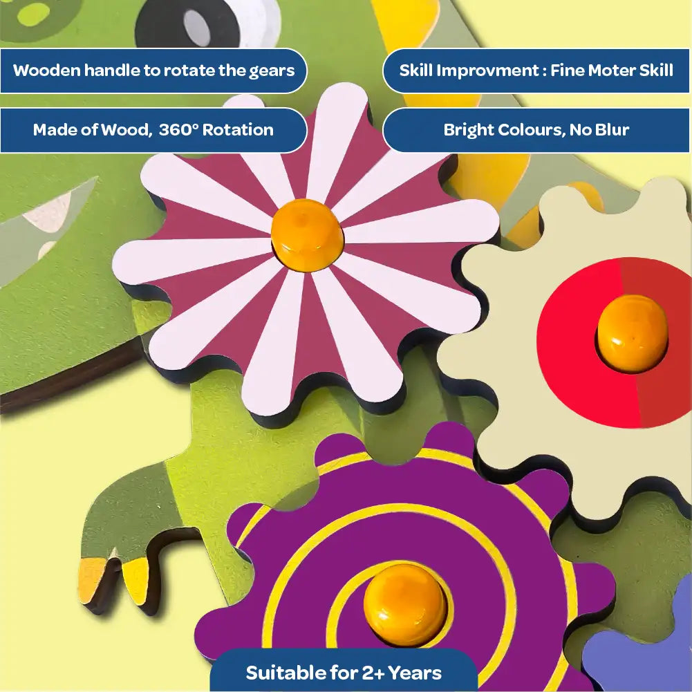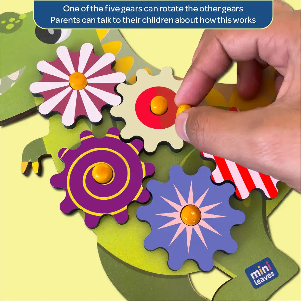 The Roaring Dino Wooden Gear Toys with 5 Interchangeable Gears for 2+ Years