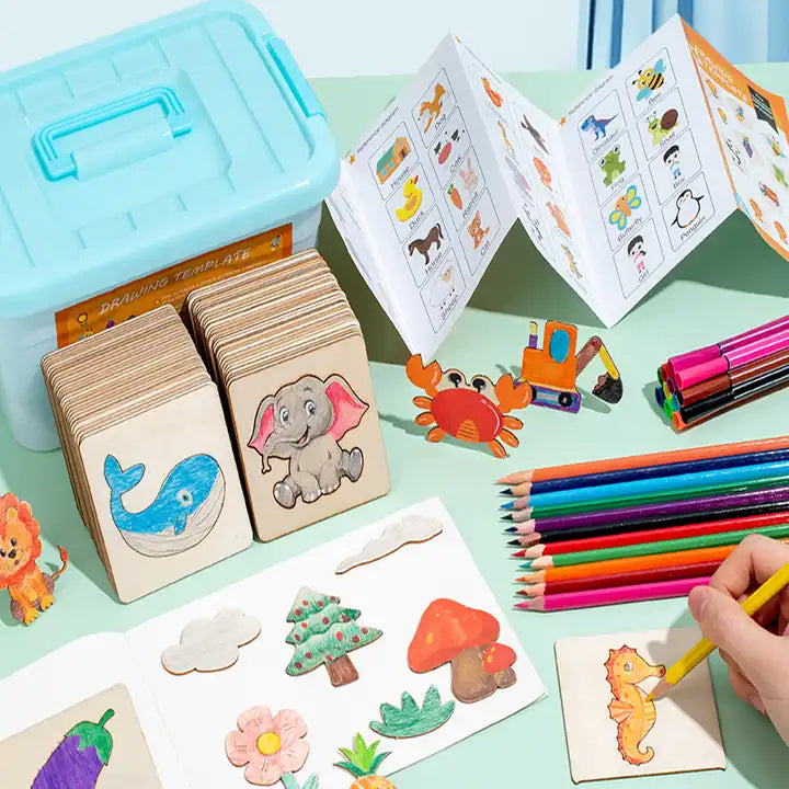 Wooden Drawing Stencils For kids (Free Paint Kit)