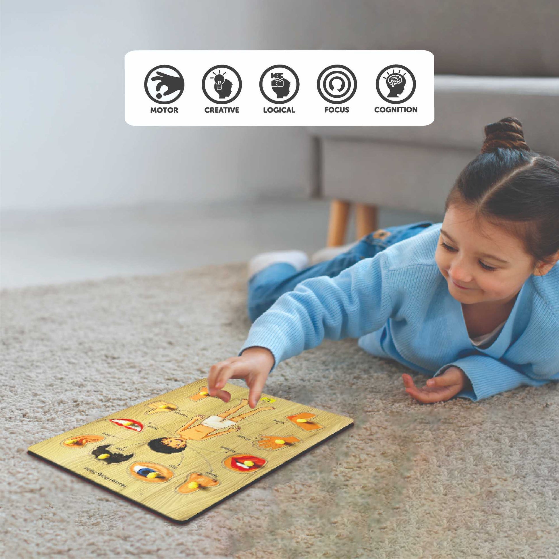 Wooden Human Body Part Knob and Pegged Puzzle for 2+ Years